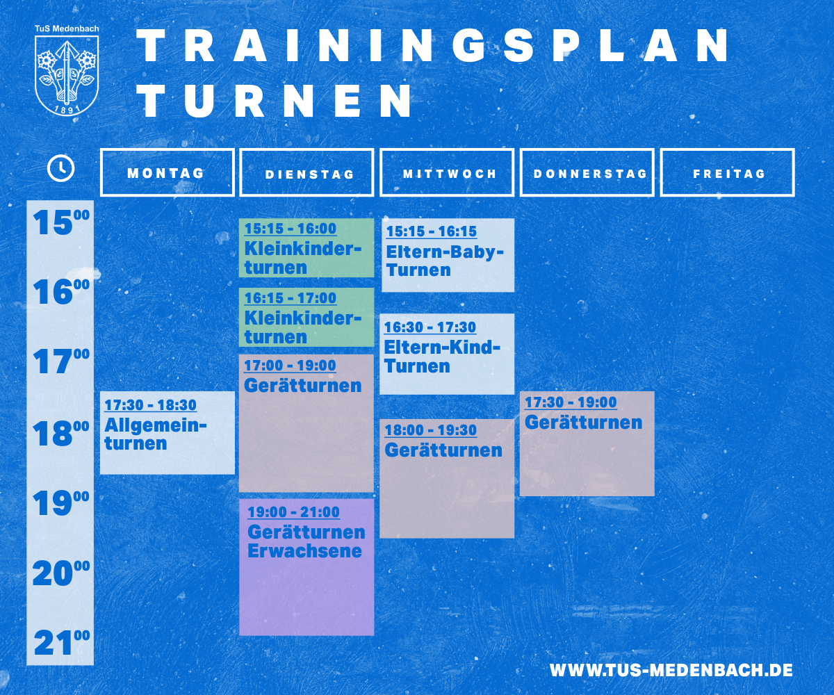 Weiter unten findet ihr unseren Kontakt für die Abteilung Turnen, sowie den aktuellen Trainingsplan. Über das Hauptmenü kommt ihr auf die einzelnen Seiten der verschiedenen Turnkategorien.